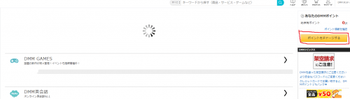 1:さきと同じくDMM.comへログイン。メインページ右の「ポイントをチャージする」を選択。