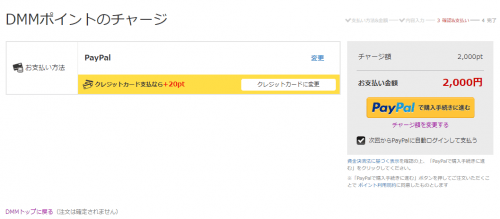またDMMポイントをチャージするのに、各携帯会社のサービス払いやPaypal、銀行振込、多々に渡り様々な方法はありますが、個人的にクレジットカード払いが1%のポイントバックも付くのでオススメです。