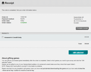 購入後にこの画面に移りますがギフトにしたい場合は、ゲームにチェックを入れて「Gift Selected」をクリックすれば出来ます。