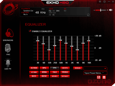 ゲームジャンルごと用途に合わせてワンクリックで重低音を強調したり可能なので、初心者でも簡単です。