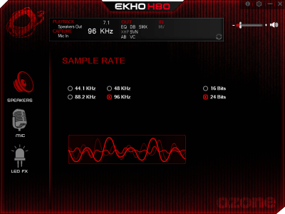 サンプリング周波数は96KHzまで、ビットレートは16bitsと24bitsのどちらかに変えられます。