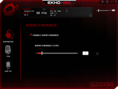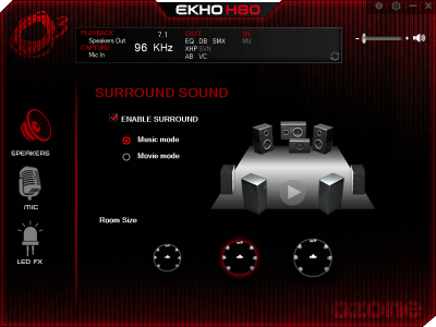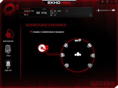 Enble Surroundにチェックを入れる事でサラウンド音響を通常とは異なる設定に変更できます。