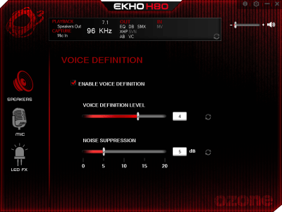 「Noise Suppreion」は雑音を抑制してくれますが、数字を上げ過ぎると音楽の歌などまでに影響を与えるので注意。