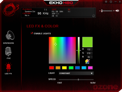 「Light」で発光パターン、「Speed」で発光速度を変えられます。
