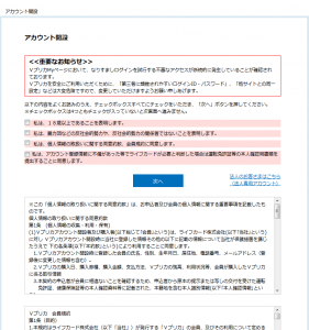2:利用規約を読んで、4項目にチェックを入れて次へ進む。