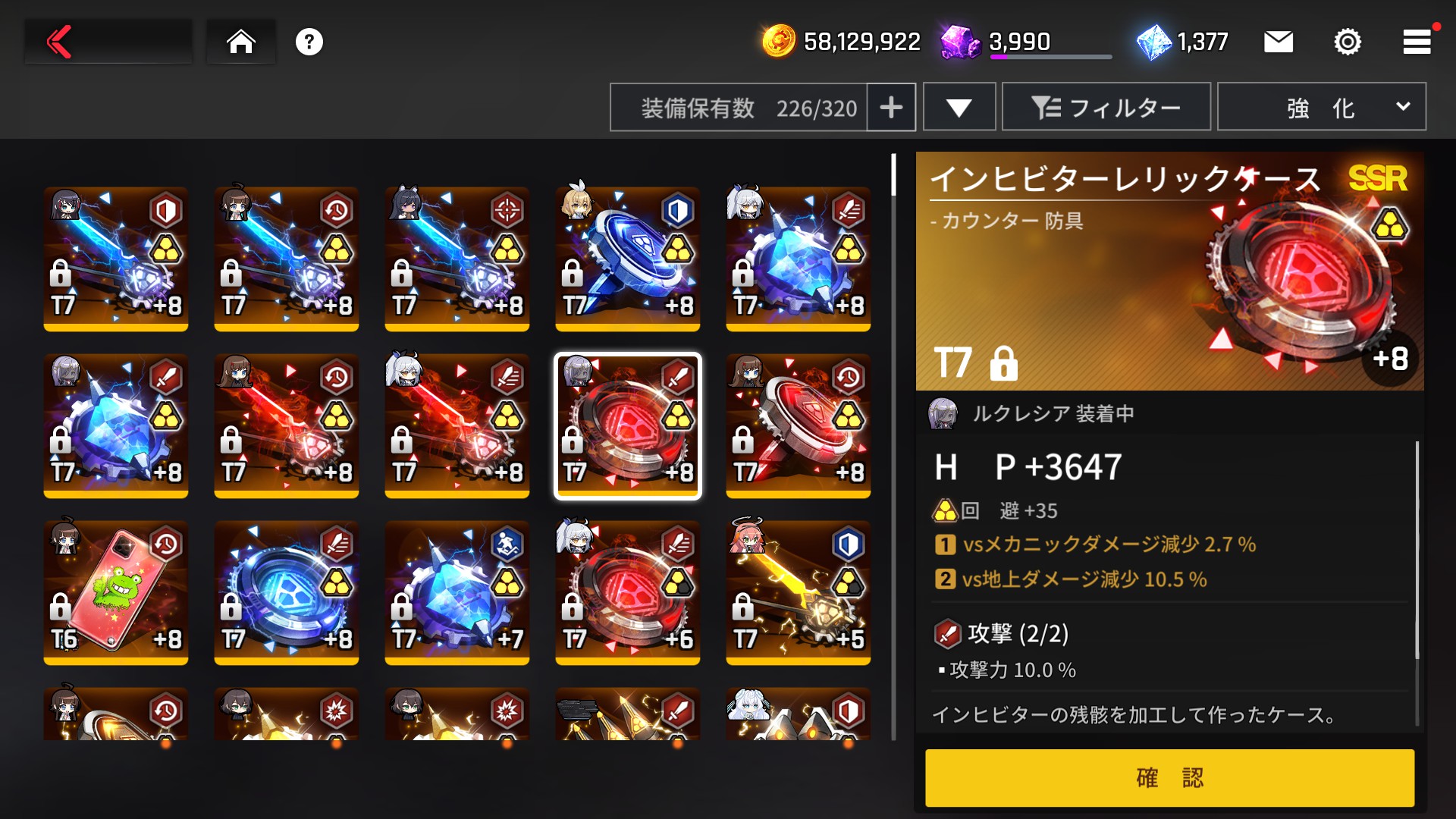 厳選要素を内包した多種多様な装備も存在し、PvPを真面目に取り組むなら厳選は必須。
