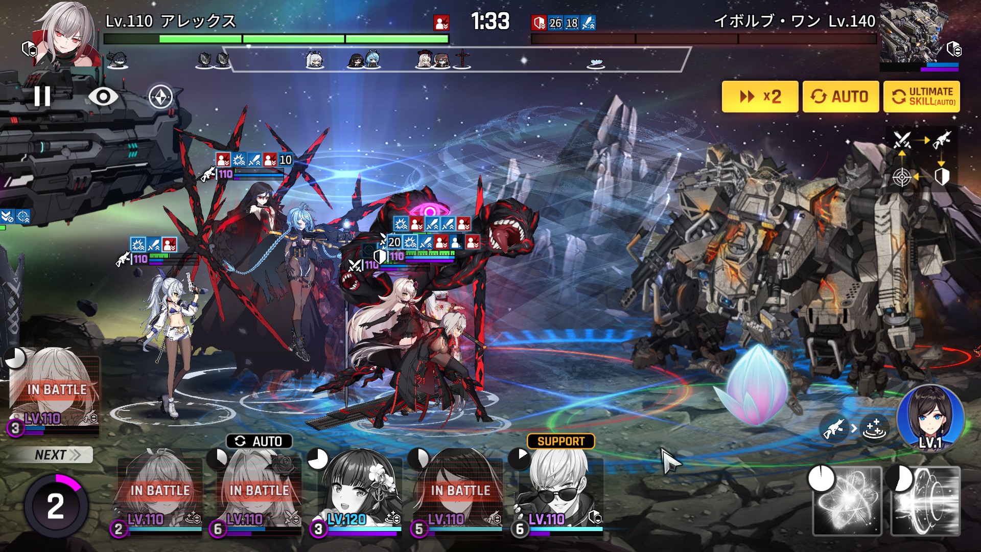 イベント含むストーリー中はボイスの無いビジュアルノベルであるものの、ワクワクする超展開と戦闘まで演出に取り入れる一体感は目を見張るものがあります。