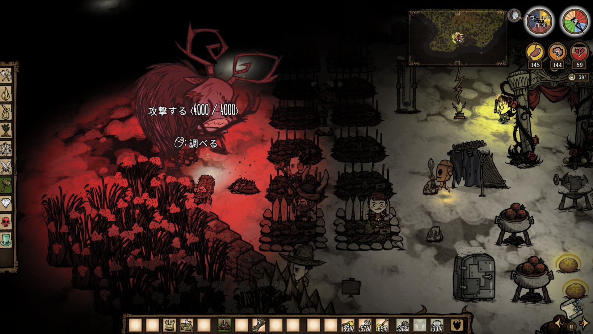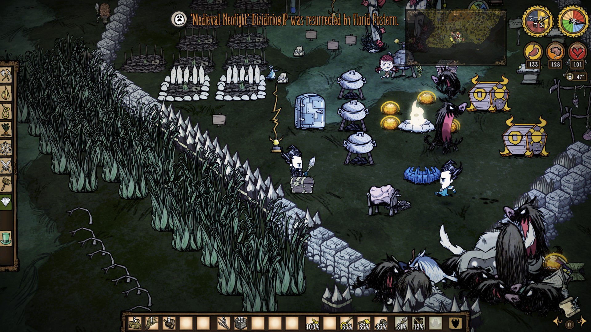 以上が『Don’t Starve』スタンドアロンの2Dサバイバル・サンドボックス『Don’t Starve Together』のレビューになります。大人数で遊ぶには丁度良いサバイバルゲーなので未プレイの人は一度触ってみて下さい。何かあればコメントお願いします。
